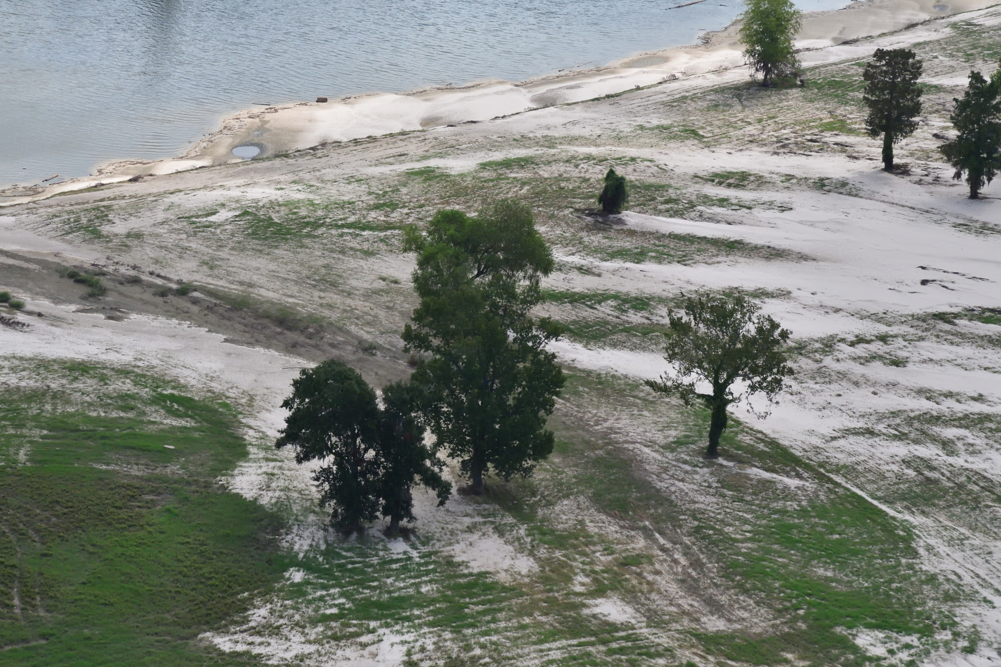 The south shore of the west fork of the San Jacinto River near Forest Cove shortly after Hurricane Harvey. Most of the sand in this area has already been cleaned up, but a tremendous amount still remains, a reminder of the storm.