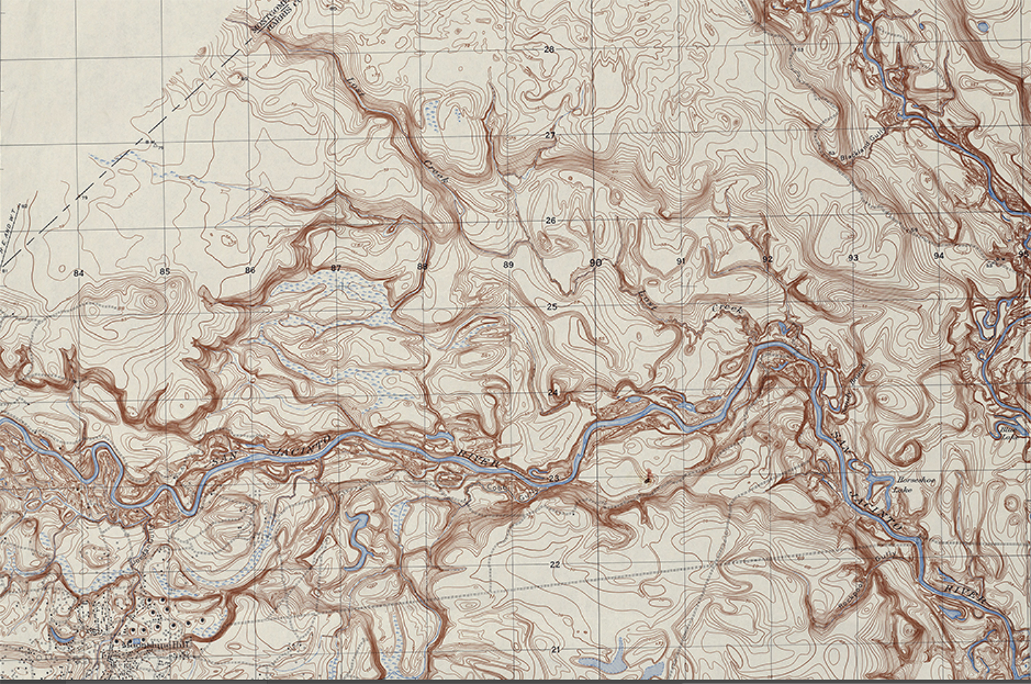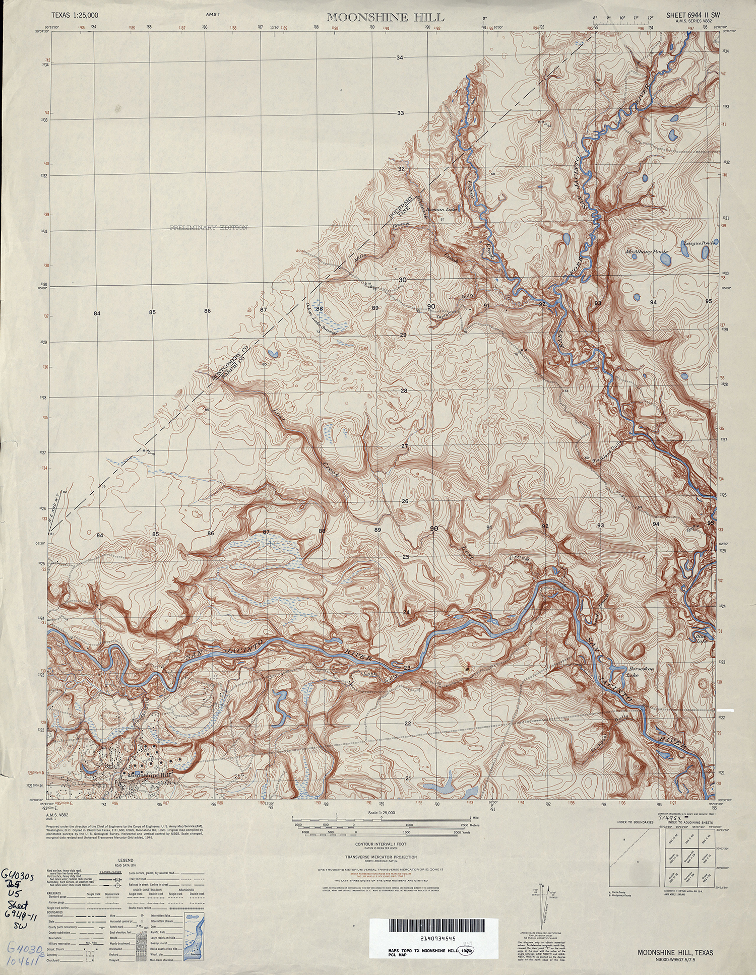 Garfield led me to the Perry-Castañeda Map Collection of Texas Topographic Maps at the UT Library Online. He found this map from 1949 of Moonshine Hill. It’s exactly 70 years old! The 1949 date means we can see where the river was before the dam and lake were built in 1955.