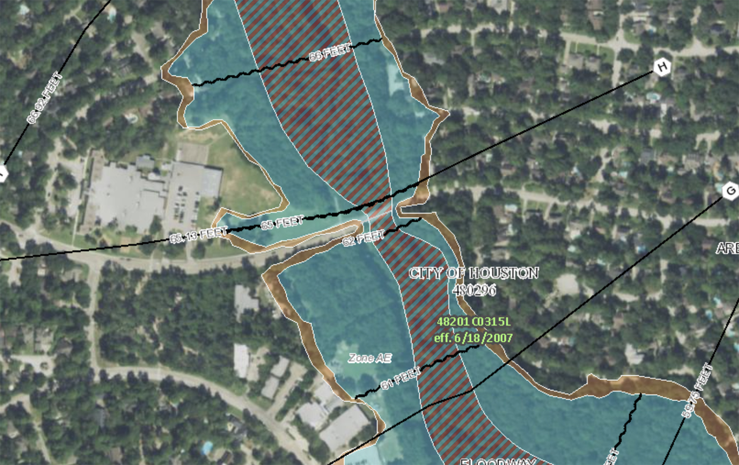 Bear Branch Elementary and Child Time on Tree Lane in Kingwood sit right next to a bridge over Ben’s Branch. Most people in Kingwood don’t need a reminder of the power of moving water. But for those with short memories this is it. A floodway and floodplain more than 250 feet wide narrows down to 80 feet at the bridge.