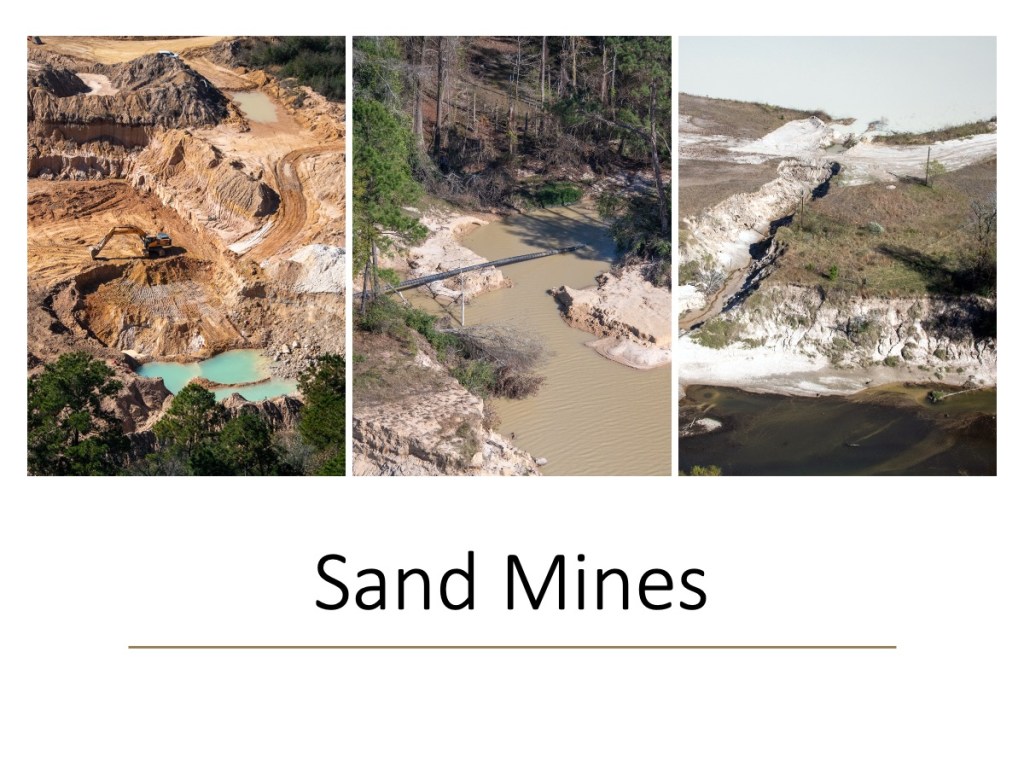 Sand mines operate so closely to the San Jacinto that their walls frequently break and pour polluted process water into the drinking water for 2 million people. If they get caught, they pay a small fine and continue operating with impunity.
