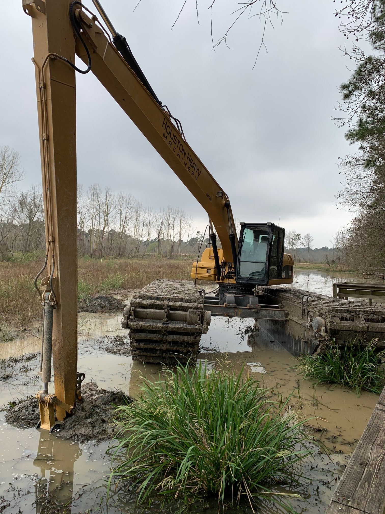 River Grove dredging has finally begun. Silt and sand deposited by Hurricane Harvey 2.5 years ago is being removed from two areas: the boat launch and boardwalk. KSA obtained a final permit from the City of Houston and equipment arrived yesterday.