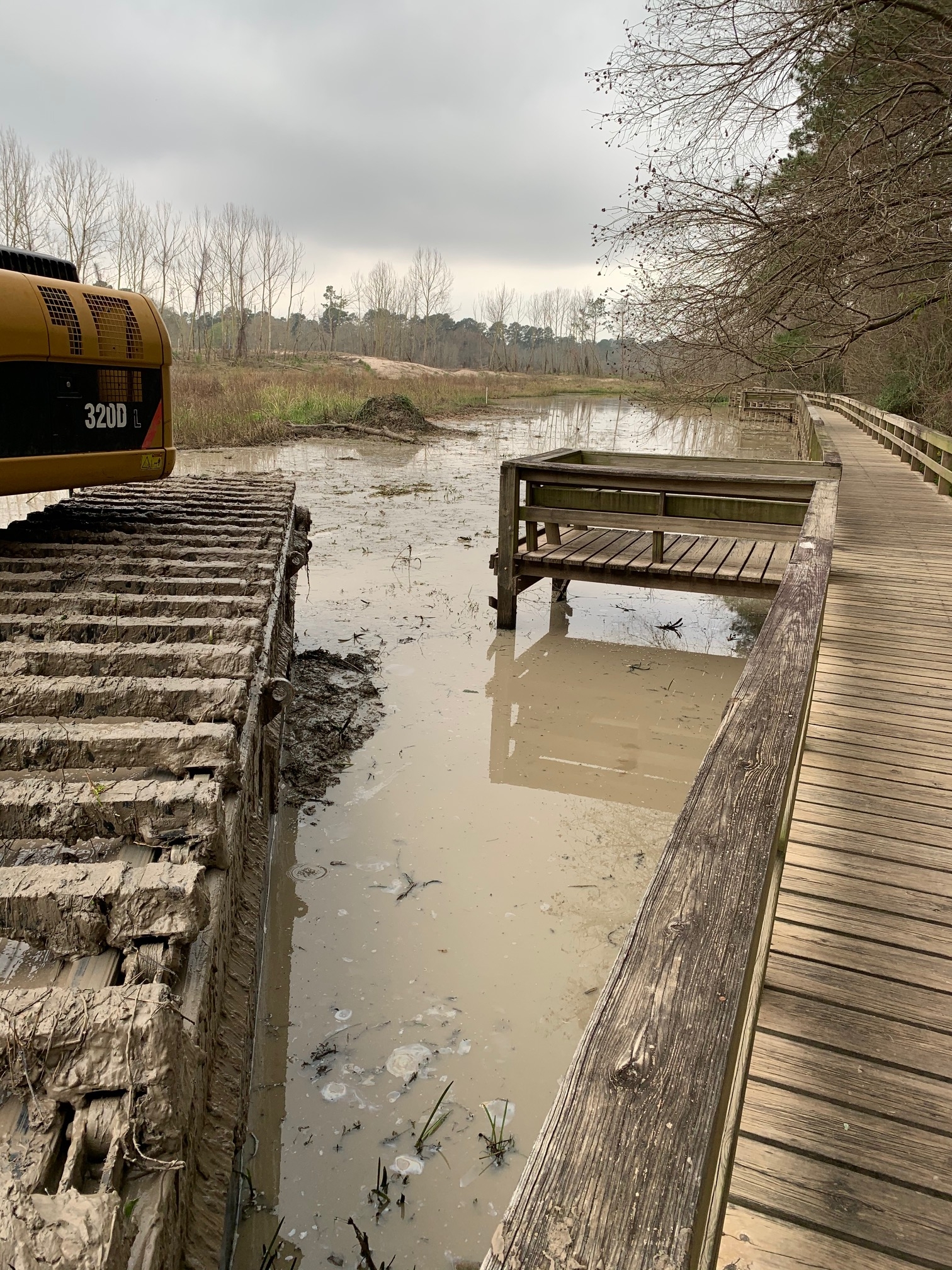 As you can see from these pictures, the contractor wasted no time. Equipment has already started removing silt from in front of the boardwalk.