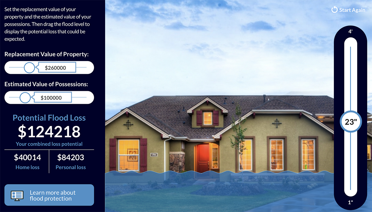The scary thing is how much you could lose even you get just an inch of water in your home! Play with it. You will see what I mean.