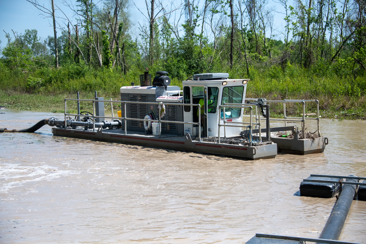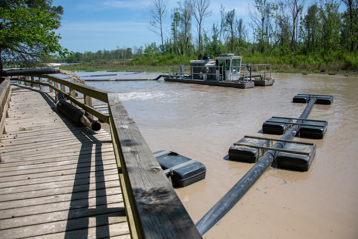According to Price, Kayden ran into a problem when the City unexpectedly lowered the level of Lake Houston about two feet. “The reduction in the water level grounded the dredging barge that they were using,” said Price. “To keep moving forward, they removed the first dredge and brought in a smaller one.”