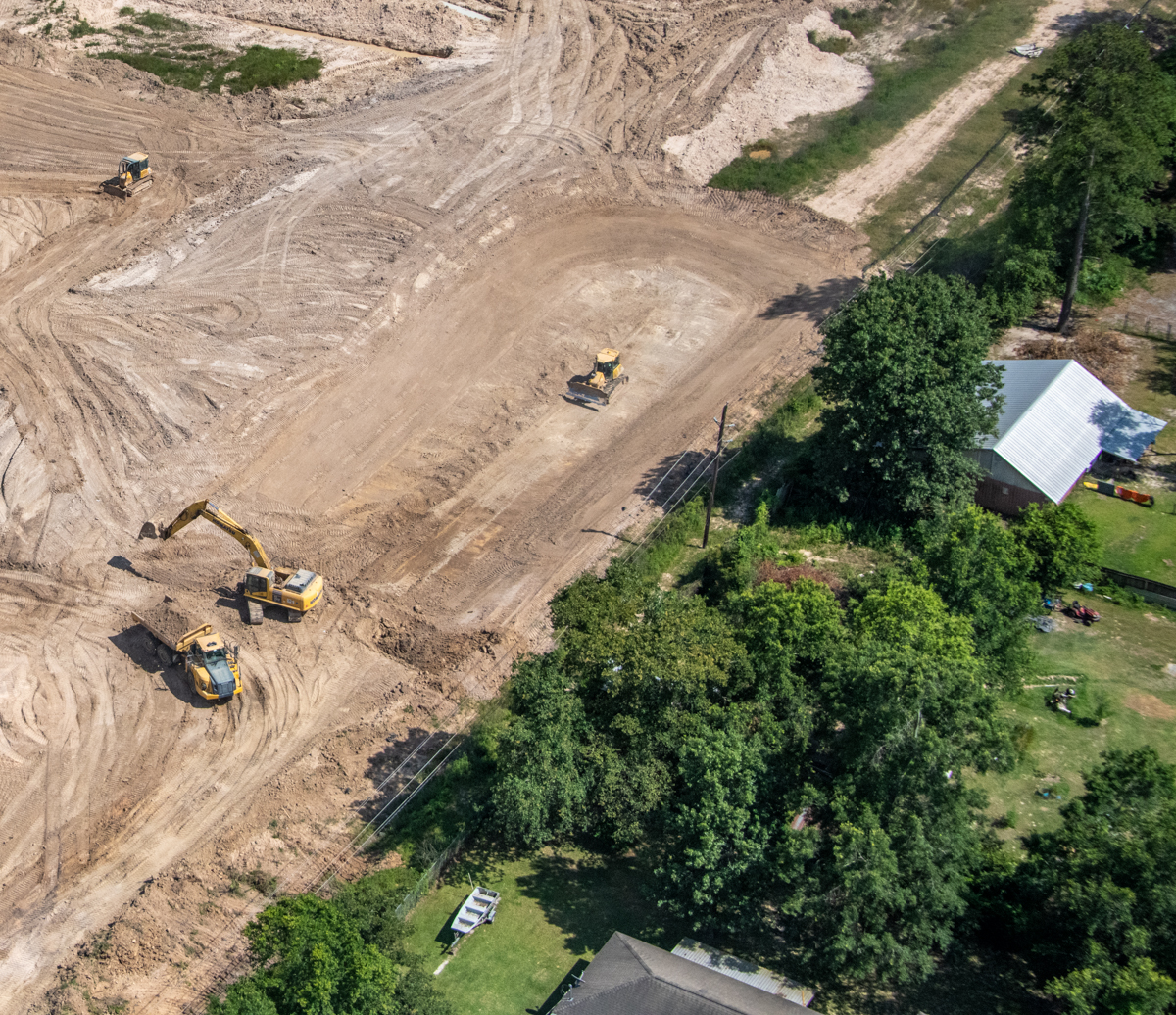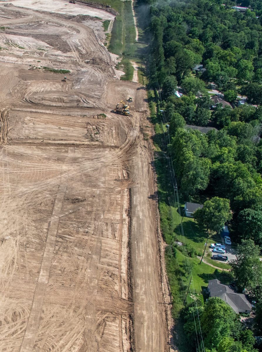 Aerial photos taken Monday this week (5/11/2020) show that Perry Homes’ contractors appear to be partially blocking drainage that serves dozens of homes on the western side of Woodridge Village in Porter. With heavy rain expected this weekend, residents like Gretchen Dunlap Smith are nervous.
