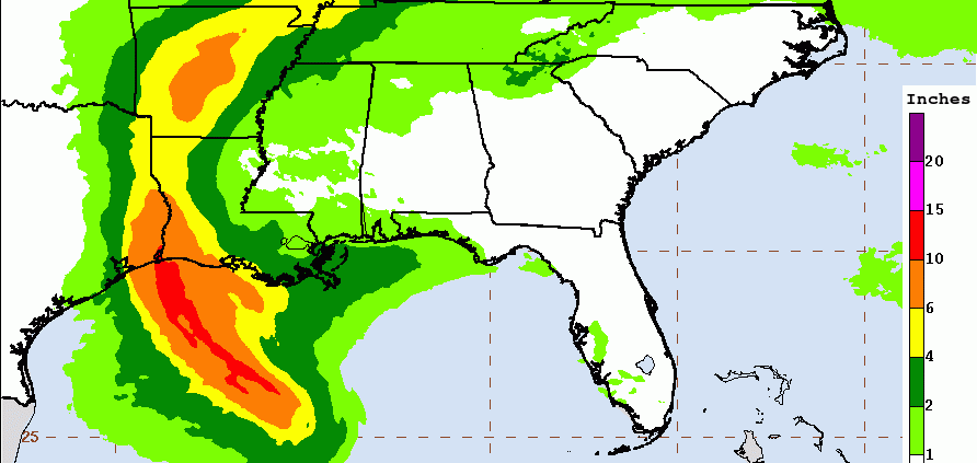 East of I-45: 2-6 inches, isolated totals up to 8 inches.