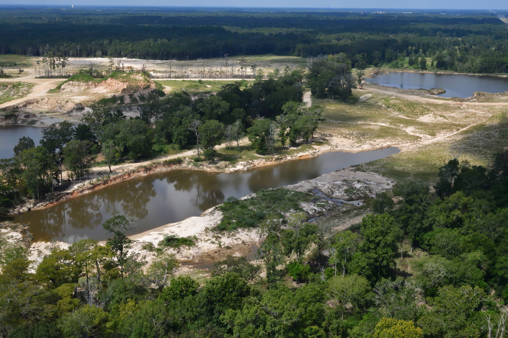 All aerial photos were taken on 9/14/17 after Hurricane Harvey. The aerial tour started near the US59 bridge, circled the sand mines to the west of Kingwood, then followed the West Fork of the San Jacinto to the East Fork. We then went up the East Fork and followed Caney Creek to the sand mine on the east side of Kingwood. Finally, we came back down Caney Creek and the east fork and returned to Hobby airport.